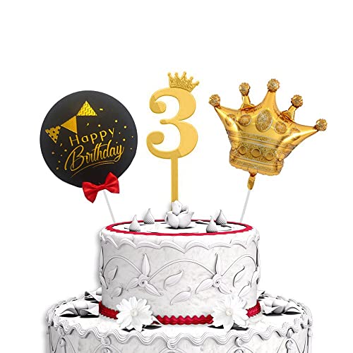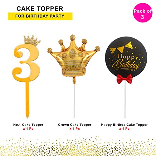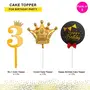 HomeBabyParty SuppliesPop The Party 3rd Birthday Cake Decorations Gold Supplies Big Set with Black Happy Birthday Cake Topper, One Gold Crown Balloon and 3 Digit Cake Topper
