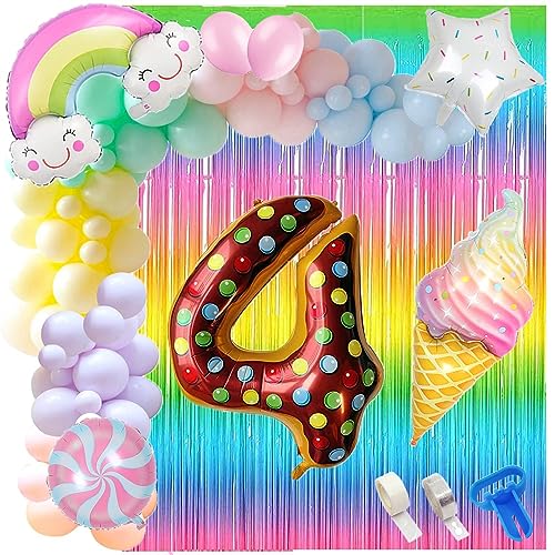 4 Number Ice Cream Balloon Garland Kit 60 Pcs Pastel Balloons Rainbow Ice Cream Curtains ArchGlue Dot Party Balloons Birthday And Ice Cream Theme Party Decorations (4 NUMBER)