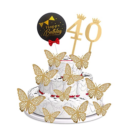 HomeBabyParty SuppliesPop The Party 40th Birthday Cake Decorations Gold Supplies Big Set with Black Happy Birthday Cake Topper, 12 Butterfly Cake Topper and 40 Digit Cake Topper