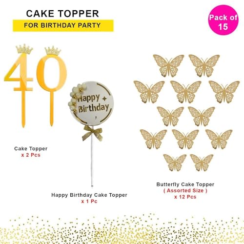 HomeBabyParty SuppliesPop The Party 40th Birthday Cake Decorations Rose Gold Supplies Big Set With White Happy Birthday Cake Topper, 12 Butterfly Cake Topper And Cake Topper (40 NUMBER)