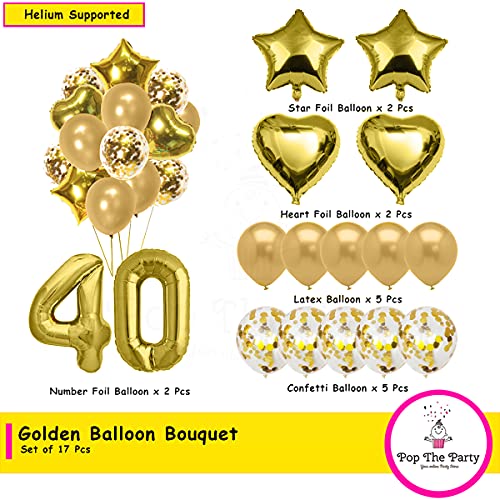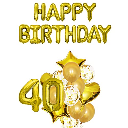 HomeBabyParty SuppliesPop The Party 40th Birthday Party Decorations Gold Supplies Big Set With Happy Birthday Balloons Banner and 40 Digit Balloon for Including Latex, star, heart and Confetti Balloons