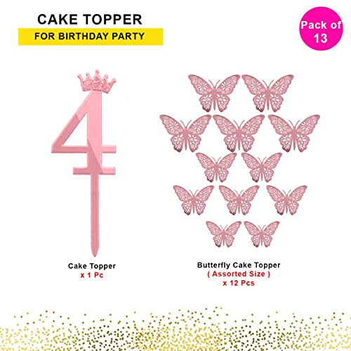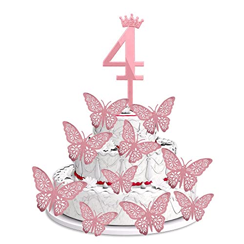 Pop The Party 4th Birthday Cake Decorations Rose Gold Supplies Big Set with 12 Butterfly Cake Topper and 4 Digit Cake Topper