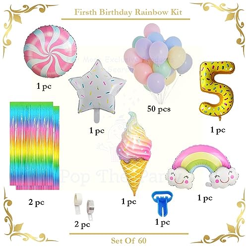 5 Number Ice Cream Balloon Garland Kit 60 Pcs Pastel Balloons Rainbow Ice Cream Curtains ArchGlue Dot Party Balloons Birthday And Ice Cream Theme Party Decorations (5 NUMBER)