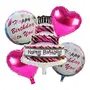 One Pcs Cake Foil Balloon Two Pcs Happy Birthday to you Round Foil Balloon and 2 Pink Heart Shape foil Balloon