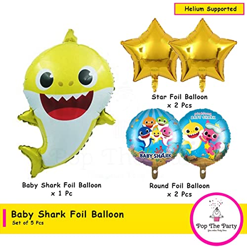 5 PCS Yellow-Shark Themed with Star and Round Balloon Birthday Celebration FOIL Balloon Combo Set