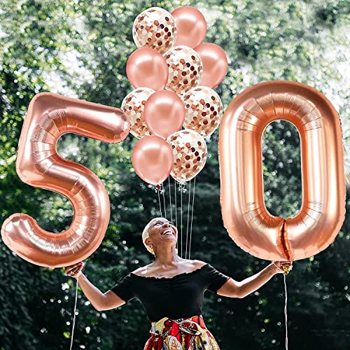 50 Balloon Number Rose Gold - 40 Inch | Rose Gold 50Th Birthday Balloons 50 Birthday Decorations For Women Rose Gold | Rose Gold 50 And Fabulous Birthday Decorations | 50 Balloons For Birthdays