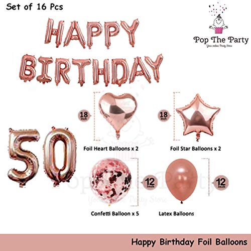 HomeBabyParty SuppliesPop The Party 50th Birthday Party Decorations Rose Gold Supplies Big Set with Happy Birthday Balloons Banner and 50 Digit Balloon for Including Latex, Star, Heart and Confetti Balloons