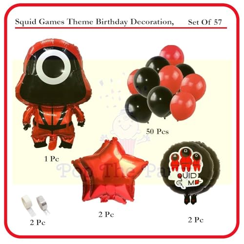 HomeBabyParty Supplies57Pcs Black & Red Quid Game Theme Party Decorations Foil Balloons For Game Theme Birthday Party Black & Red theme party. Game Theme Party.