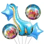 HomeBabyParty SuppliesPop The Party 5PCS Blue Dinosaur Foil Balloons Dino Balloon for Wild One Baby Shower Jungle Safari Animal World Themed Party Decoration