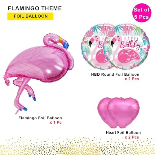 Pop The Party 5pcs Flamingo Theme Decoration Set with Round Foil Balloon for Birthday Décor