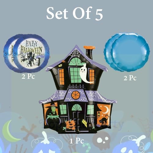 Package Contains : 1Pcs Halloween House Foil Balloon2Pcs Halloween Round Balloon2Pcs Blue Round Foil Balloon