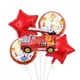 5Pcs Jumbo Train With Round And Star Foil Balloons Red Train Mylar Balloons For Car Themed Party Supplies Decorations Baby Shower Wedding Birthday Party Favors