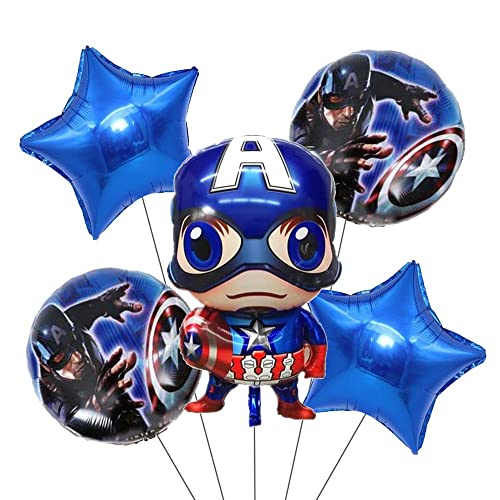 5PCS Superhero Captain Foil Balloons for Kids Birthday Baby Shower Super Hero Theme Party Decorations