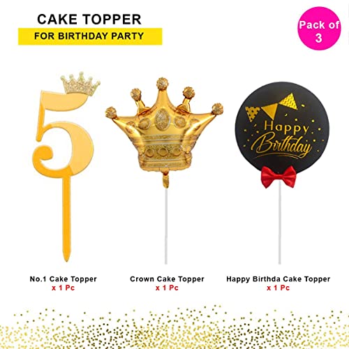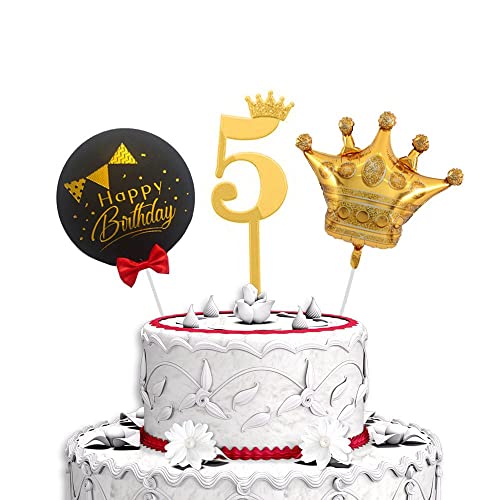 HomeBabyParty SuppliesPop The Party 5th Birthday Cake Decorations Gold Supplies Big Set with Black Happy Birthday Cake Topper, One Gold Crown Balloon and 5 Digit Cake Topper