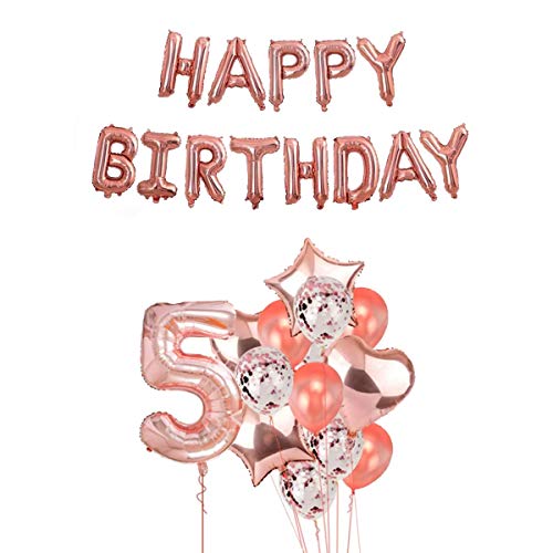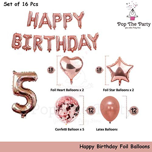 HomeBabyParty SuppliesPop The Party 5th Year Birthday Party Decorations Rose Gold Supplies Big Set with Happy Birthday Balloons Banner and 5 Digit Balloon for Including Latex, Star, Heart and Confetti Balloons