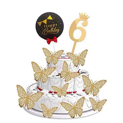 HomeBabyParty SuppliesPop The Party 6th Birthday Cake Decorations Gold Supplies Big Set with Black Happy Birthday Cake Topper, 12 Butterfly Cake Topper and 6 Digit Cake Topper