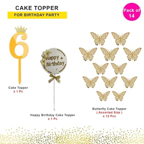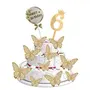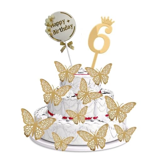 HomeBabyParty SuppliesPop The Party 6th Birthday Cake Decorations Gold Supplies Big Set With Black Happy Birthday Cake Topper, 12 Butterfly Cake Topper And Cake Topper (6 NUMBER)