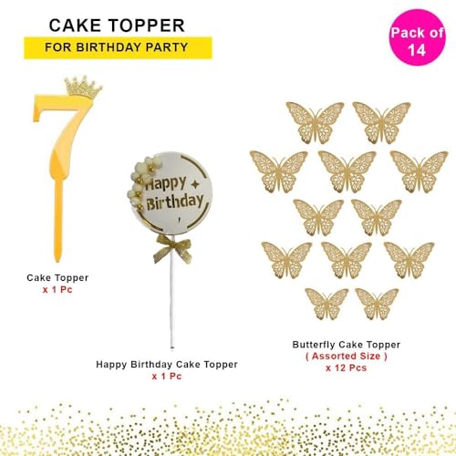HomeBabyParty SuppliesPop The Party 7th Birthday Cake Decorations Gold Supplies Big Set With Black Happy Birthday Cake Topper, 12 Butterfly Cake Topper And Cake Topper (7 NUMBER)
