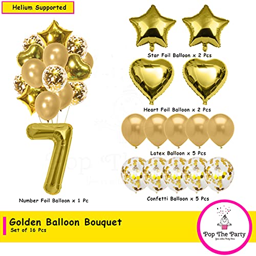 HomeBabyParty SuppliesPop The Party 7th Birthday Party Decorations Gold Supplies Big Set With Happy Birthday Balloons Banner and 7 Digit Balloon for Including Latex, star, heart and Confetti Balloons