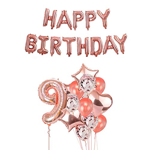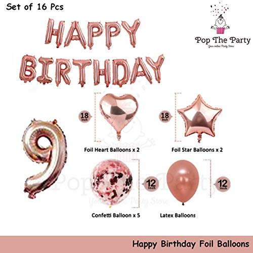 HomeBabyParty SuppliesPop The Party 9th Birthday Party Decorations Rose Gold Supplies Big Set with Happy Birthday Balloons Banner and 9 Digit Balloon for Including Latex, Star, Heart and Confetti Balloons