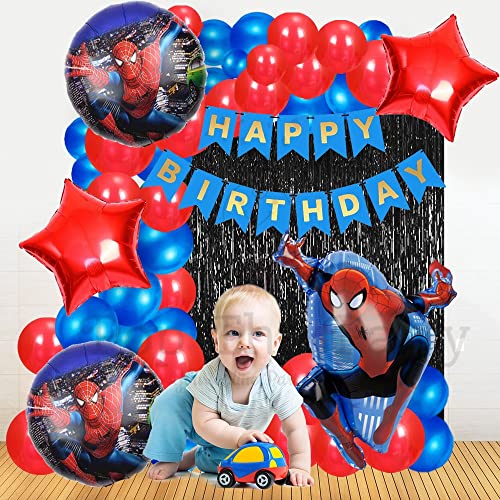 Birthday Party Decoration Items with Happy Birthday Backdrop Banner Spiderman Decorating Kit(spidermankitp58)