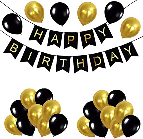 Package Includes: This Beautiful Birthday Theme Party Decorations Set :1 Happy Birthday Banner30Pcs Black Gold Balloon