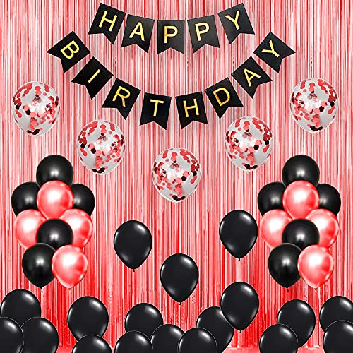 HomeBabyParty SuppliesBlack Birthday Party Decorations Set with Black Birthday Banner Red Curtains Red Confetti and Black Red Metallic Balloon Set of 63 Pack for Birthday Supplies