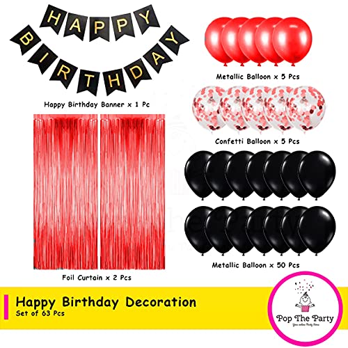 Black Birthday Party Decorations Set With Black Birthday Banner Red Curtains Red Confetti And Black Red Latex Balloon Set Of 63 Pack For Birthday Supplies