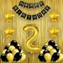 HomeBabyParty SuppliesPop The Party Black Gold 2nd Birthday Party Decorations with Birthday Banner, Star, Latex Balloons, Curtains and 2 Digit No. Set of 39 Supplies (2ndBirthday Party Decoration Gold)
