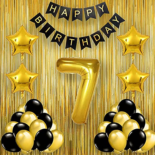 Black Gold 7Th Birthday Party Decorations With Birthday Banner Star Foil Latex Balloons Curtains And 7 Digit No. Set Of 39