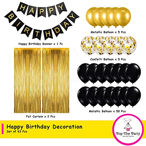 HomeBabyParty SuppliesPop The Party Black Gold Birthday Party Decorations with Birthday Banner, Star, Latex Balloons, Curtains and Digit No. Set of 37 Party Supplies