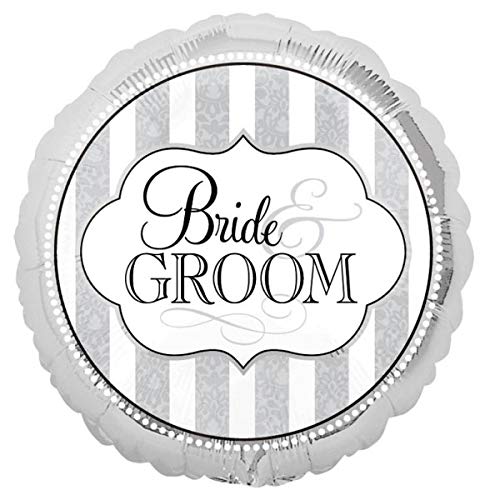 Add This Simple But Elegant Bride And Groom Balloon To Your Decorations! Package Includes 1 Silver Circle Shaped Foil Balloon With Bride And Groom Printed In The Center Of A Striped Background.