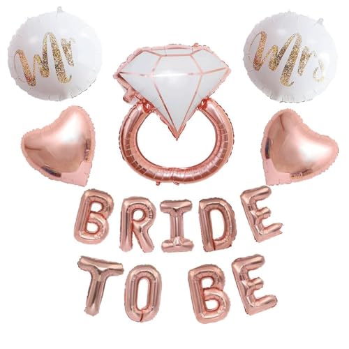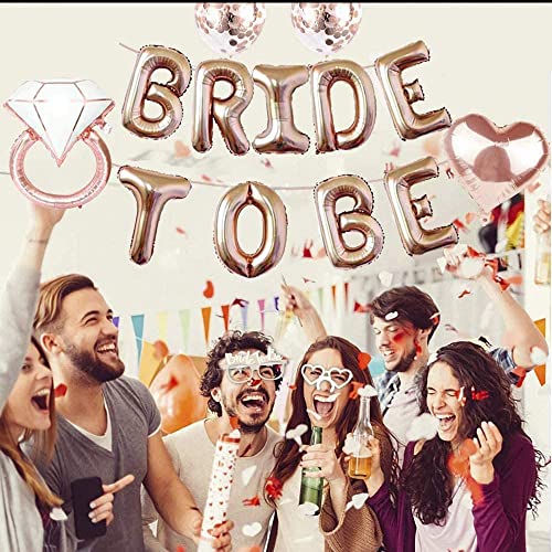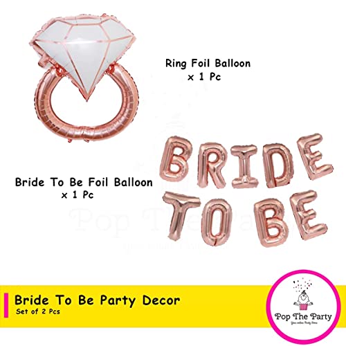 Pop The Party Bride to Be Rose Gold Letter Foil Balloon with 5Pcs Ring for Bridal Shower