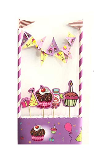 Package: 5pcs cake topper toothpicks+1pcs cake side+1pcs cake flag bunting banner