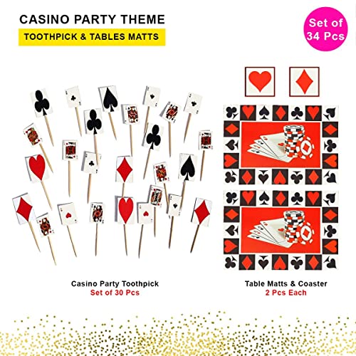 Pop The Party Casino Theme Cards Party Decoration with Casino Table Mat, Coaster and Casino Toothpick kit Pack of 35