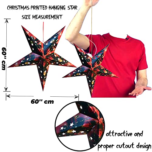 TOYXE Merry Christmas 3D Star Christmas Tree Lights Printed Large Size Multi Color Pack of 4