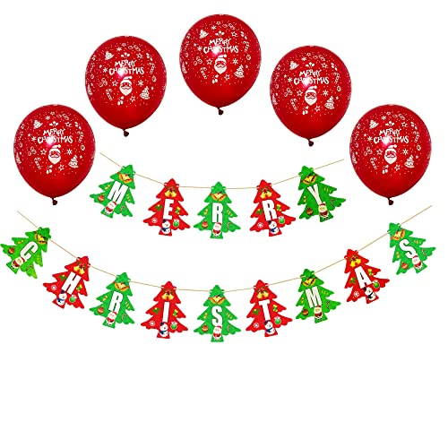 Pack includes: 10 Pcs Merry Christmas Balloons and 1 Pc Merry Christmas Bunting Banner