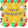 GRAND SHOP Merry Christmas Banner with Assorted Santa Tree Snow Man Hanging and Balloons with Back Drop Curtain