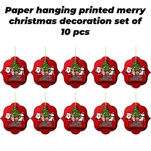 Christmas Cards Hanging Merry Christmas Decoration Set Includes 10 Pcs. Made of Premium Paper and Quality Printed. You can hang these to trees office ceilings Doors Walls etc. You can check more related item like Santa Snowmen Christmas Tree Christmas Bell etc
