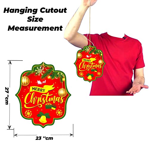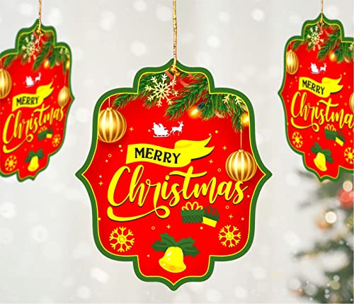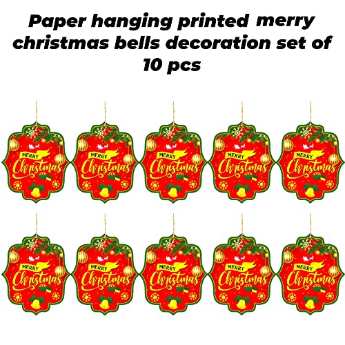 Merry Cristmas Printed Cards Hanging Christmas Decoration Set Includes 10 Pcs. Made of Premium Paper and Quality Printed. You can hang these to trees office ceilings Doors Walls etc. You can check more related item like Santa Snowmen Christmas Tree Christmas Bell etc