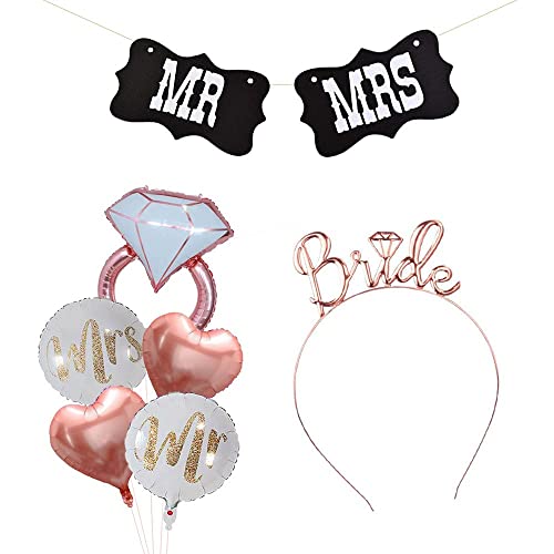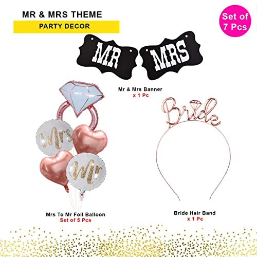 HomeBabyParty SuppliesPop The Party Engaement Patry Decoration Kit with Mr. Mrs Banner,Ring, Heart, Round foil Balloon,Bride Heir Band for Bridal Shower, Wedding Reception, First Night Pack of 7