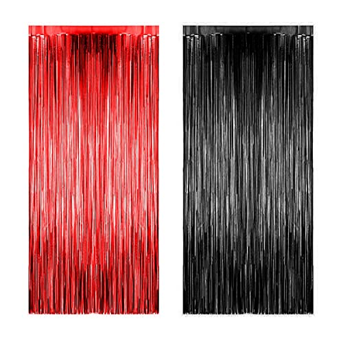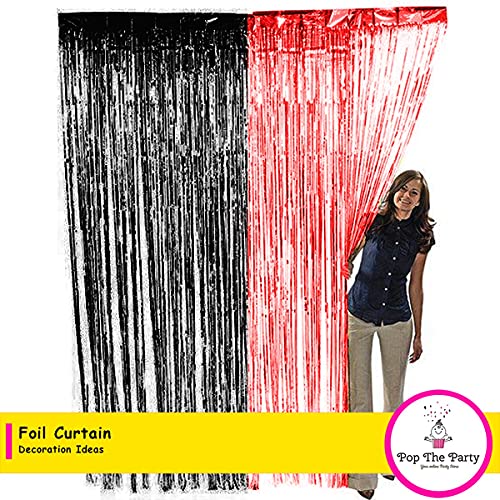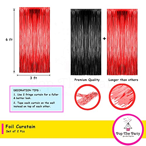 Pop The Party Foil Curtain for Party Decoration 6ft x 3ft Size - Set of 2 (Black Red)
