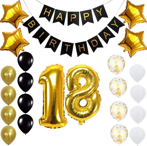 Pop The Party Gold 18th Birthday Decoration Kit With Banner ,Star Latex and confetti Balloon Set of 23