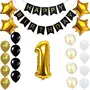 Pop The Party Gold 1st Birthday Decoration Kit With Banner ,Star Latex and confetti Balloon (1)