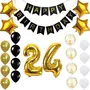 Pop The Party Gold 24th Birthday Decoration Kit With Banner ,Star Latex and confetti Balloon Set of 23