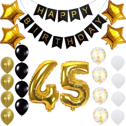 Pop The Party Gold 45th Birthday Decoration Kit With Banner ,Star Latex and confetti Balloon Set of 23