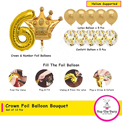 HomeBabyParty SuppliesPop The Party Gold 6 Digit Number foil Balloon with Crown Foil, Confetti and Latex Balloon for Birthday Anniversary Balloon Set of 12