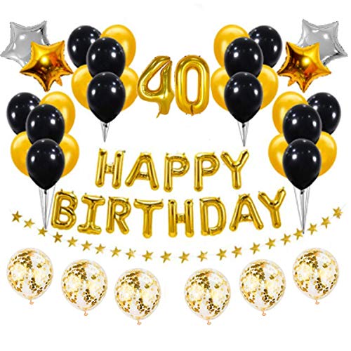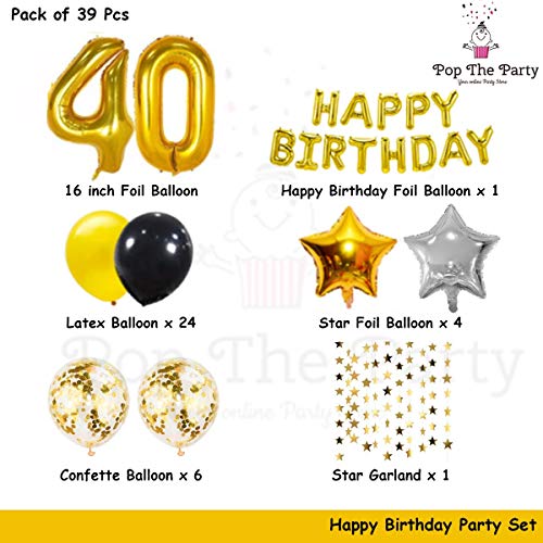 HomeBabyParty SuppliesPop The Party Golden and Black 40th Birthday Party Decorations Set- Gold Happy Birthday Banner,Foil Number Balloons, Latex Balloons and More for 40 Years Old Birthday Party Supplies