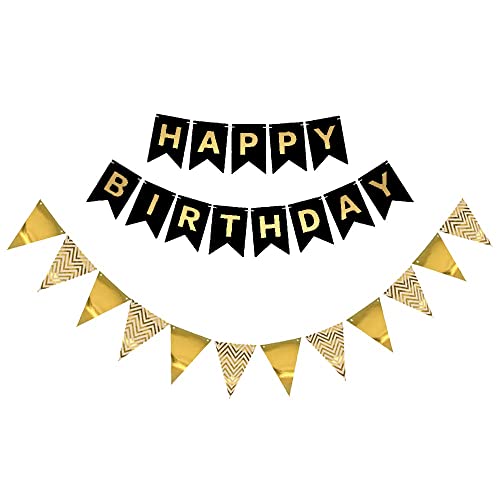 Happy Birthday Banner Party Hanging Paper Triangle Bunting Decoration For Birthday Party(Black Gold)