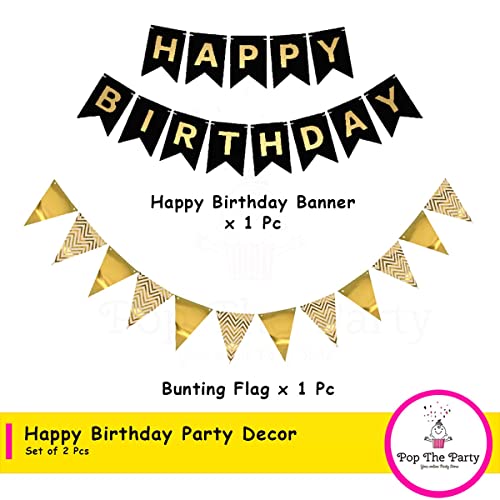 Pop The Party Happy Birthday Banner Party Hanging Paper Triangle Bunting Decoration for Birthday (Black Gold)